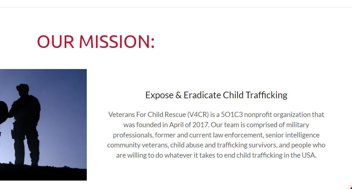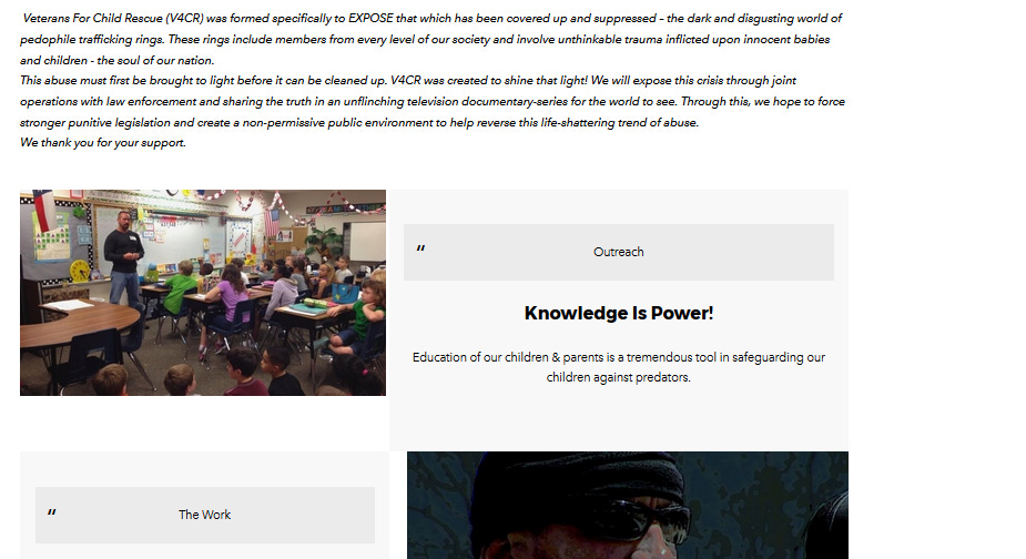 Veterans for Child Rescue was formed specifically to expose… pedophile trafficking rings…